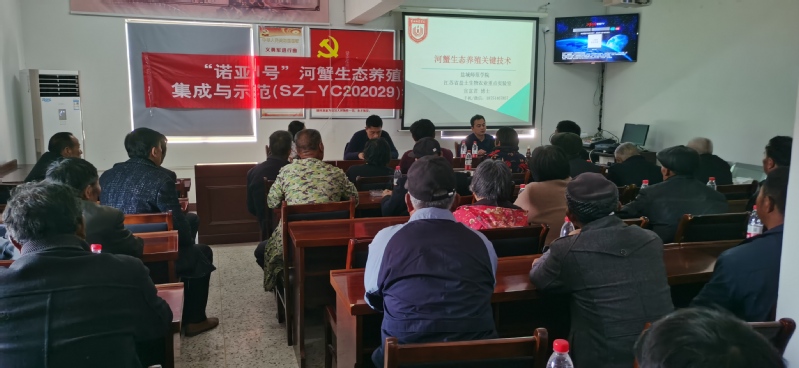 为推进江苏省河蟹生态养殖迈上新台阶,2021年3月24日下午,受江苏沿海地区农业科学研究所和当地政府邀请,学院组织技术团队来到射阳四明镇,举办河蟹生态养殖关键技术培训会。